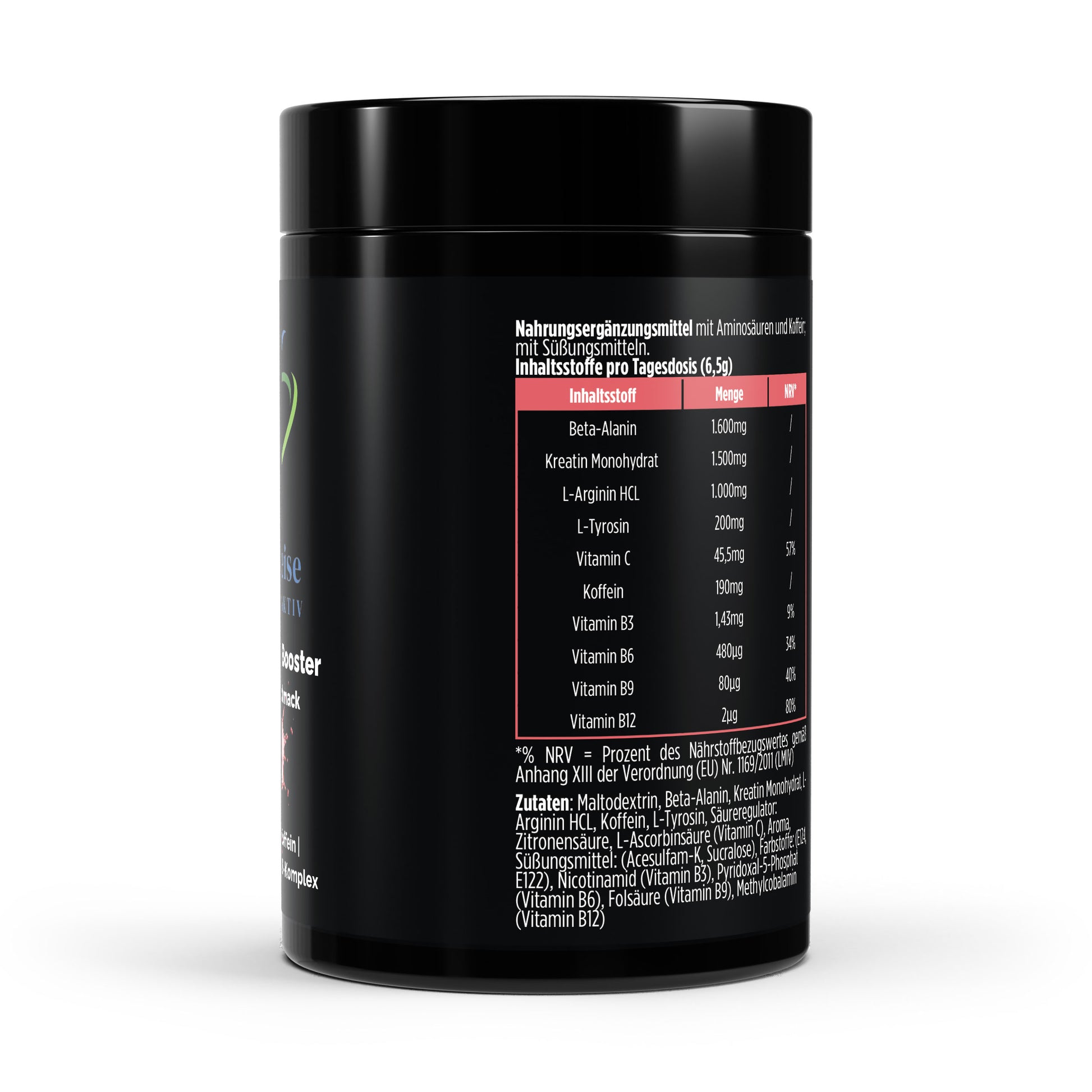 Zutaten: Beta-Alanin, L-Citrullin, Koffein, B-Vitamine, Aroma Himbeere